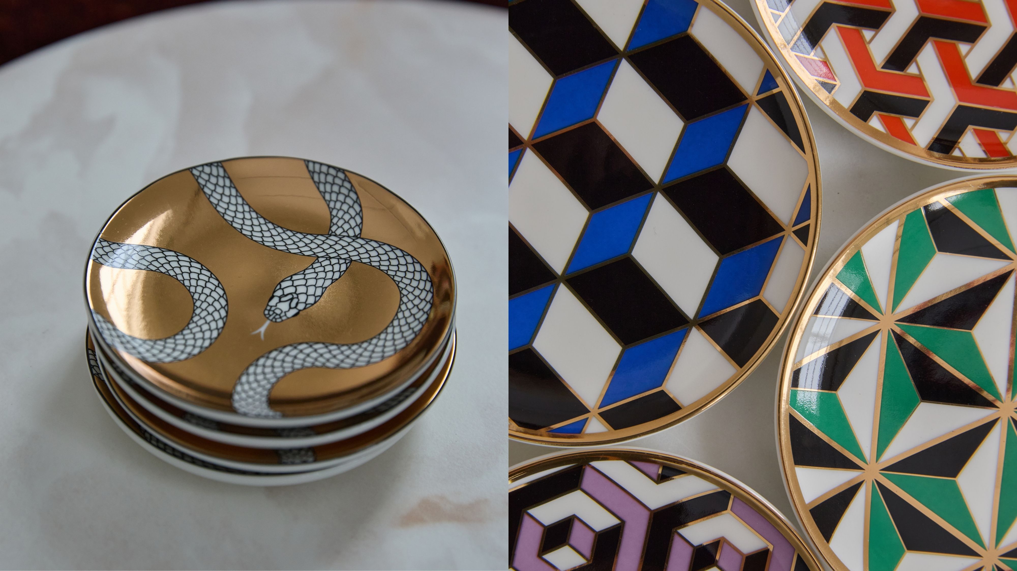 Pozłacana taca dekoracyjna z porcelany Full Dose
