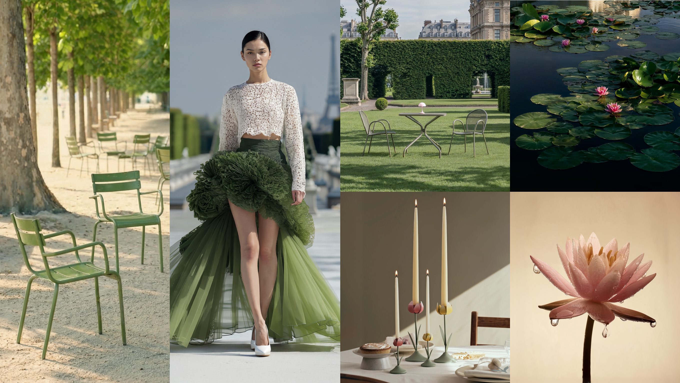 Inspirowana aurą paryskiego ogrodu, który regularnie zamienia się w wybieg dla pokazów mody, powstała lekka aranżacja pełna wiosennego nastroju. Naturalne barwy, subtelne akcenty florystyczne oraz starannie wyselekcjonowane oświetlenie i dekoracje łączą się w harmonijną całość, nadając przestrzeni spokój i przejrzystość. To styl współczesny i swobodny – zachowujący idealną równowagę między tradycją, modą a wyrafinowanym umiarem.