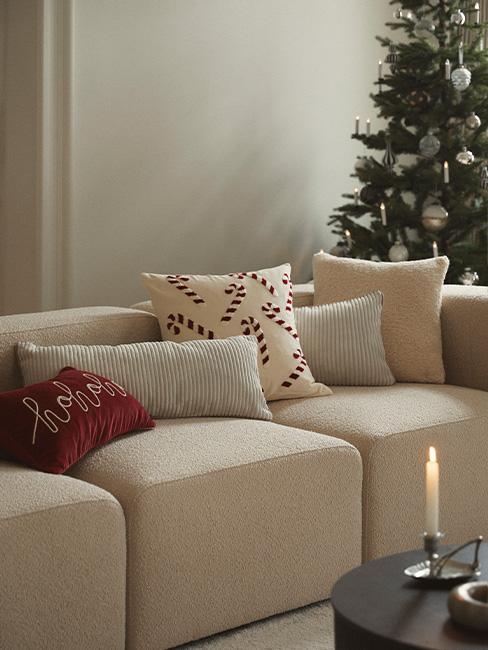 beżowa sofa Lena i miękkie futerkowe poduszki w przytulnym salonie