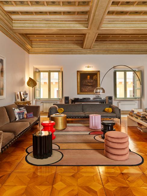 Orientalny wystrój wnętrza z ciemnym, zdobionym sufitem