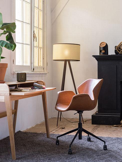 Sypialnia z drewnianą komodą, lampką oraz roślinami - dom rustykalny