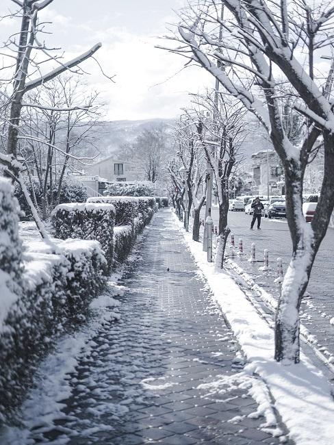 Stolik rozstawiony na promenadzie pod zadaszeniem
