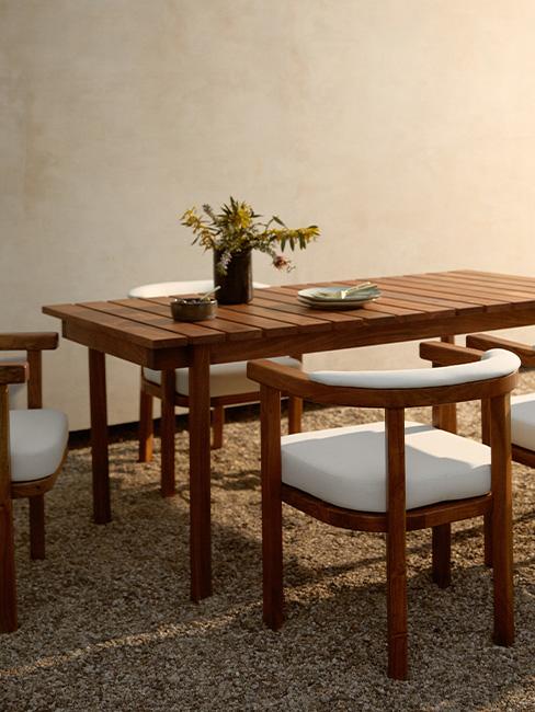 nowoczesna jadalnia z drewniamym stołem oraz rzesłami z plecionką wiedeńską