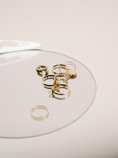 moodboard wnętrza przedstawiający jak łączyć kolor złoty z zielenią