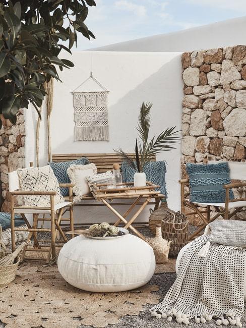 Taras w minimalistycznym stylu z czarno-białymi dekoracjami