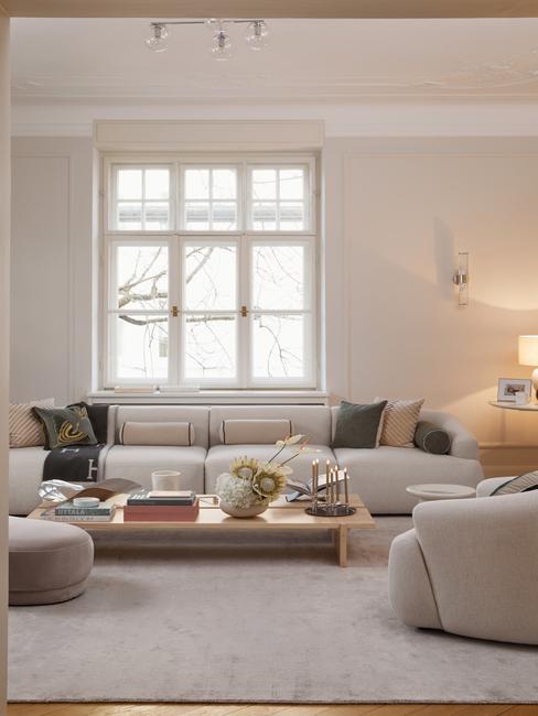 maksymalistyczny salon z psem leżącym na kanapie