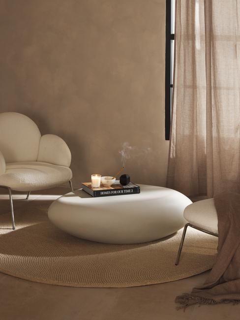 trendy dekoracyjne 2024 kolorowe akcesoria takie jak niebieski stół i kolorowe wazony w salonie