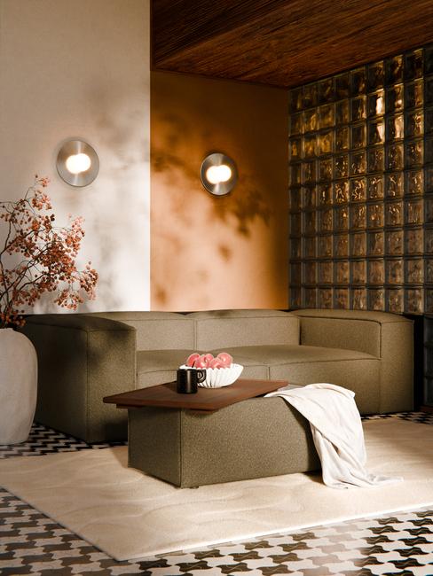 Salon w odcieniach szarości z brązowymi dodatkami