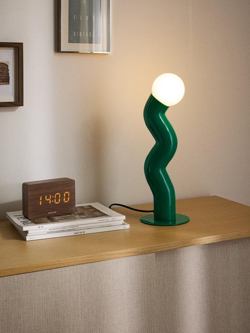 Sypialnia ze ścianą w kolorze mocnej zieleni z łóżkiem z różowym zagłówkiem