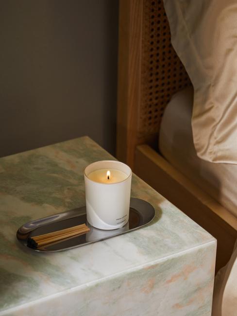 Stroik z bomnek i świecy na stoliku kawowym w salonie