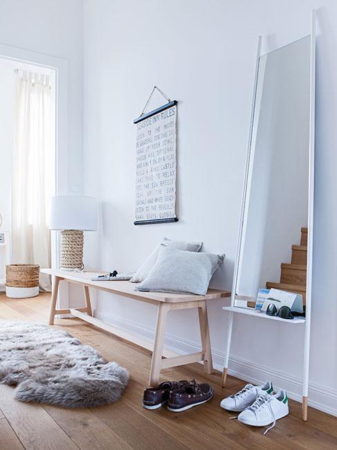 Sypialnia w kolorach greiche z naturalnymi dodatkami