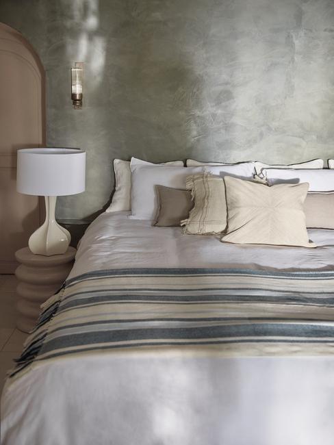 Zgniła zieleń w sypialni - na ścianie i tapicerce łóżka