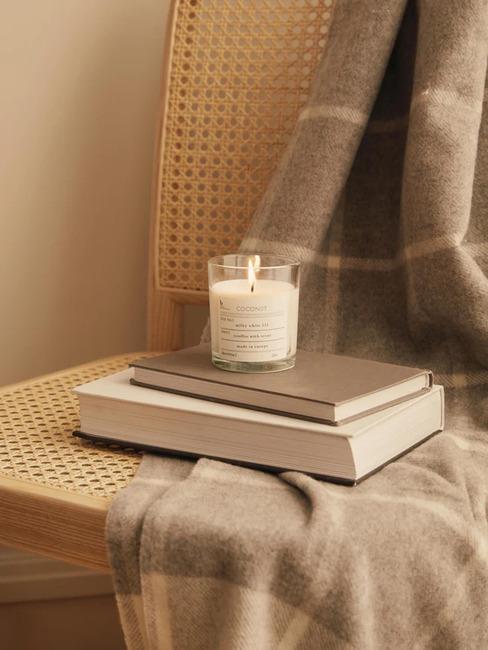 Stroik bożonarodzeniowy na stole z marmuru zrobiony z suszonych traw i świeczek