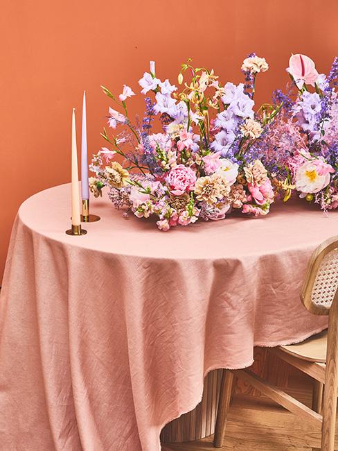 dekoracja stołu z różami i lnianymi serwetkami na garden party