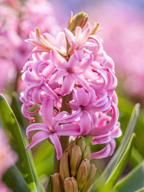 Pastelowo-zielone poduszki na łóżku z pościelą we wzory w pastelowych odcieniach