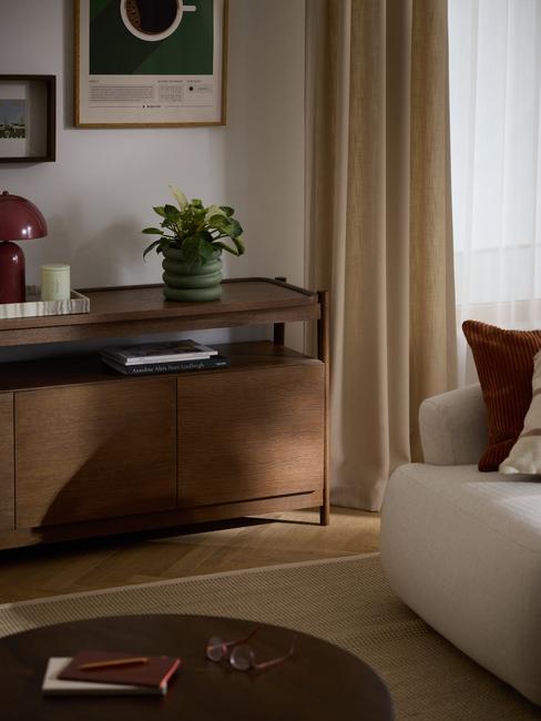 salon w stylu boho z lnianymi zasłonami