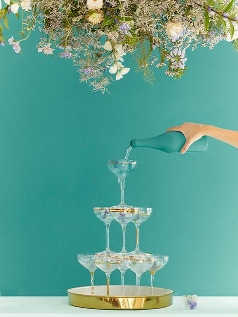 Lamperia na miętowej ścianie, na niej ustawione antyramy