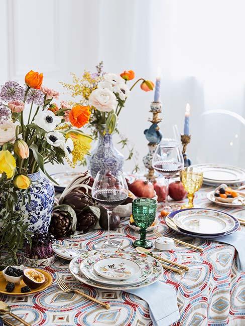 Stół wielkanocny z wazonem i naczyniami w kolorze granatu