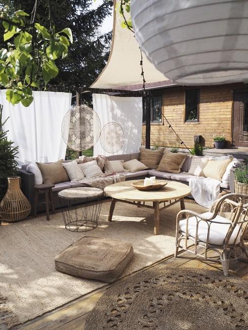 salon w odcieniach bieli z naturalnymi materiałami w stylu wabi sabi