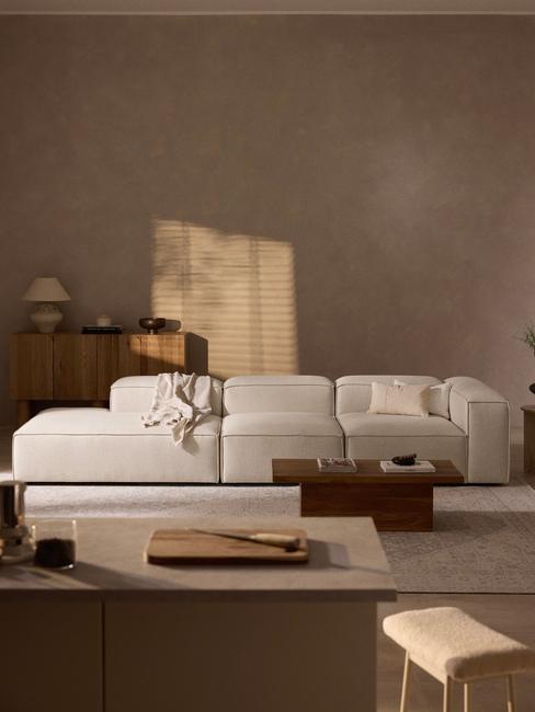 Beżowy salon na moodboardzie ze złotymi dekoracjami