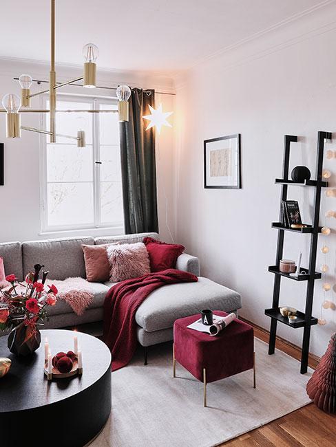Drabinka i ozdoby boho w białym salonie