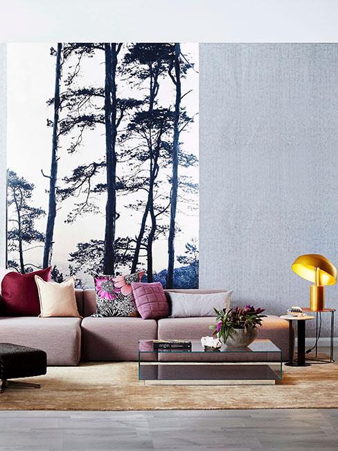 Sofa wmodulowa w kolorze tarakoty w salonie boho