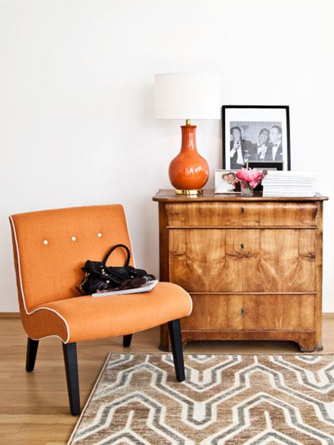 Sessel in Kurkuma auf einem Teppich neben einem goldfarbenem Couchtisch und einem Deko-Schwein