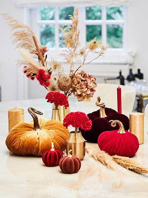 Komplet świeczników i wazonów na tle ściany w żółtym odcieniu