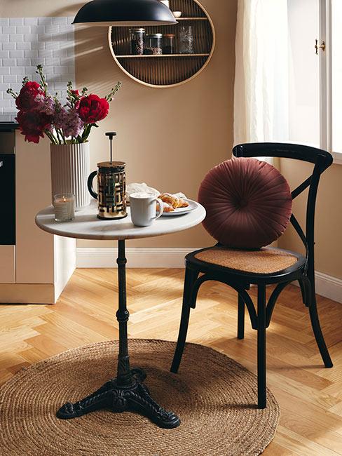 Taras z dwoma krzesłąmi, stolikiem oraz dekoracjami