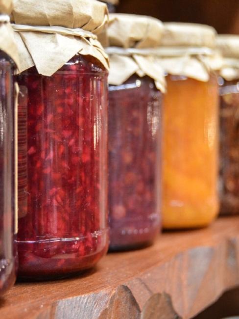 Szklany wazon z suszonymi kwiatami stojący na drewnianej komodzie