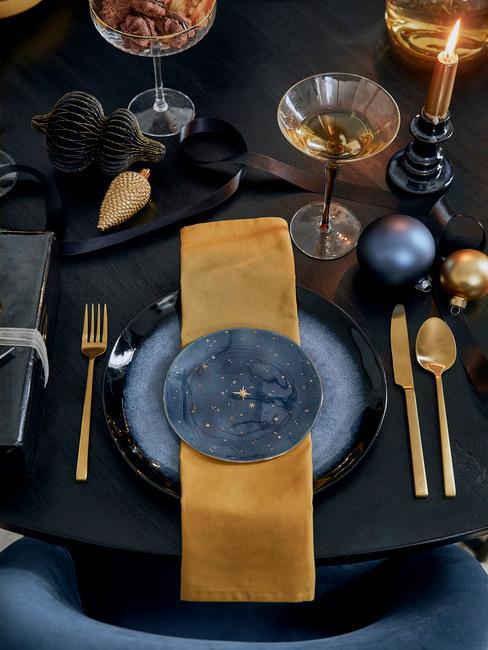 Stół z niebieską zastawą talerzy oraz kubków w stylu skandynawskim z danami na brunch