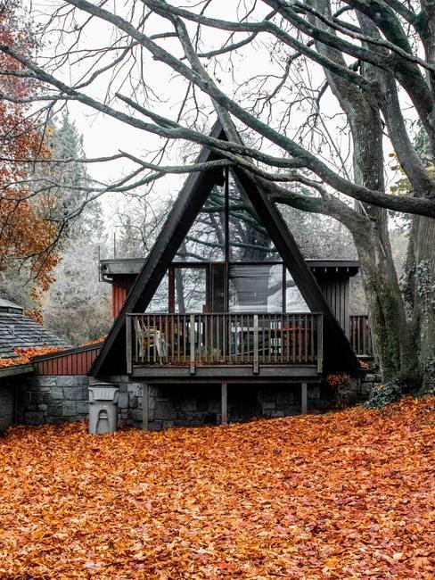 Jadalnia w górskiej chacie z drewnianym stołem i rzeżbionymi krzesłami