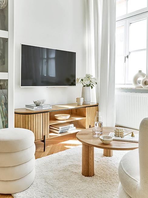 Salon w kolorach bieli i drewna - dom rustykalny