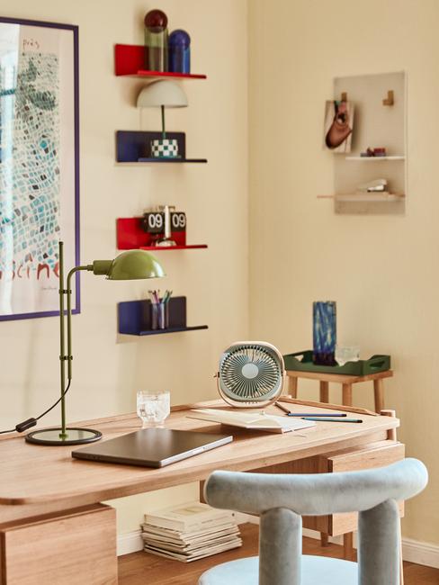 moodboard wnętrz z pastelowym żółtym i fioletem
