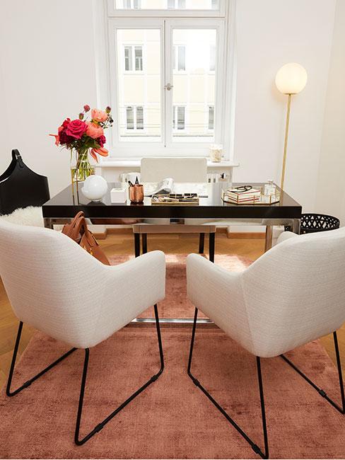 Czarny sekretarzyk w kąciku do pracy w stylu francuskim