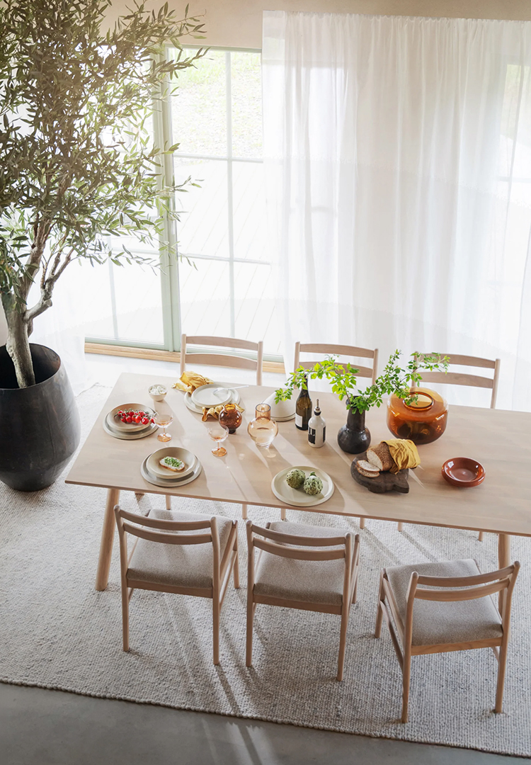 Nordic by Nature: krzesło KERWIN z litego drewna dębowego łączy rzeźbione linie z ciepłymi odcieniami. Zainspirowane duńskim rzemiosłem z połowy wieku, wprowadza do wnętrz spokojną, ponadczasową elegancję i swobodny styl skandynawski.